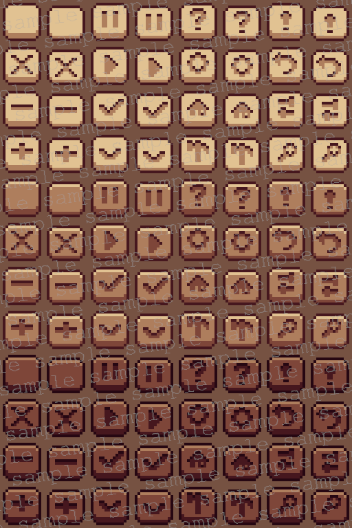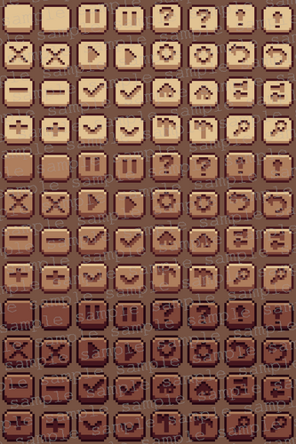 - buttons (pressed and unpressed, icons and blank)